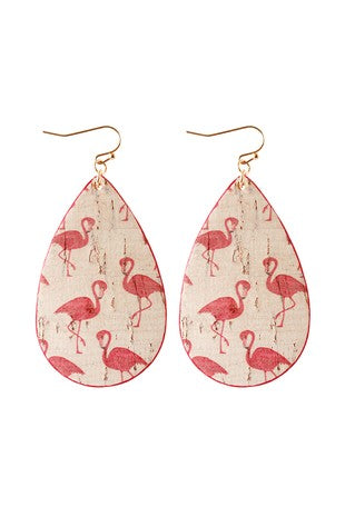 Flamingo Teardrop Leather Earrings